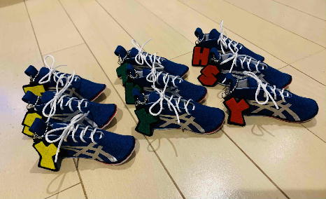 ロゴはなくても、おそろいのカラーにゼッケンナンバーがついたお守りも、気持ちがこもっていて素敵ですね。ありがとうございました。