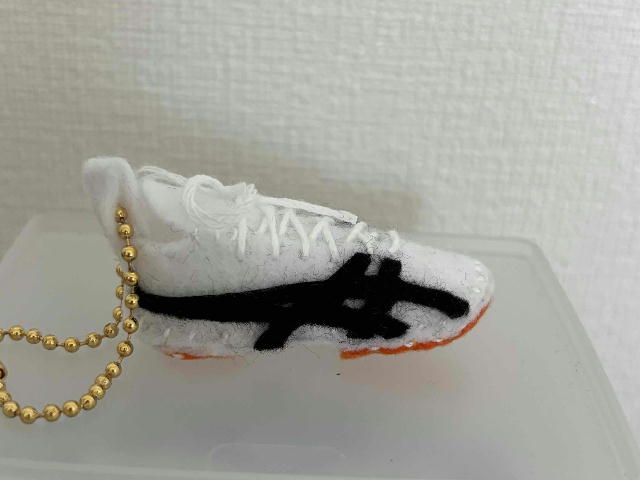 金色の靴ひもがとても印象的ですね。難しかったそうですが、素晴らしい完成度だと思います。ぜひ次のマスコットにもチャレンジしてください。ありがとうございました。
